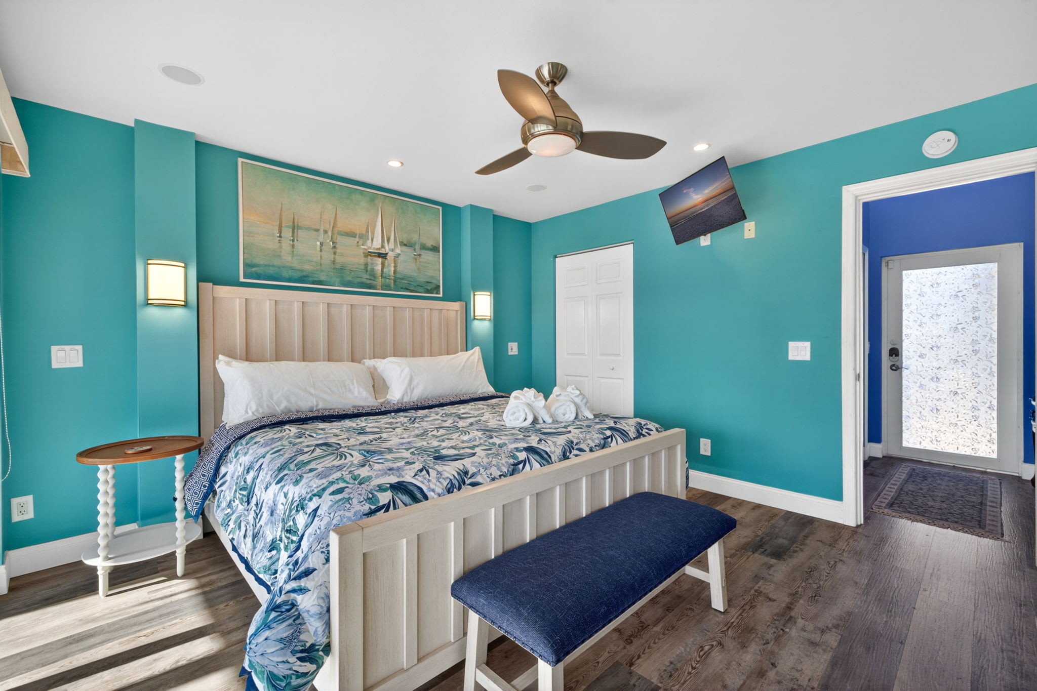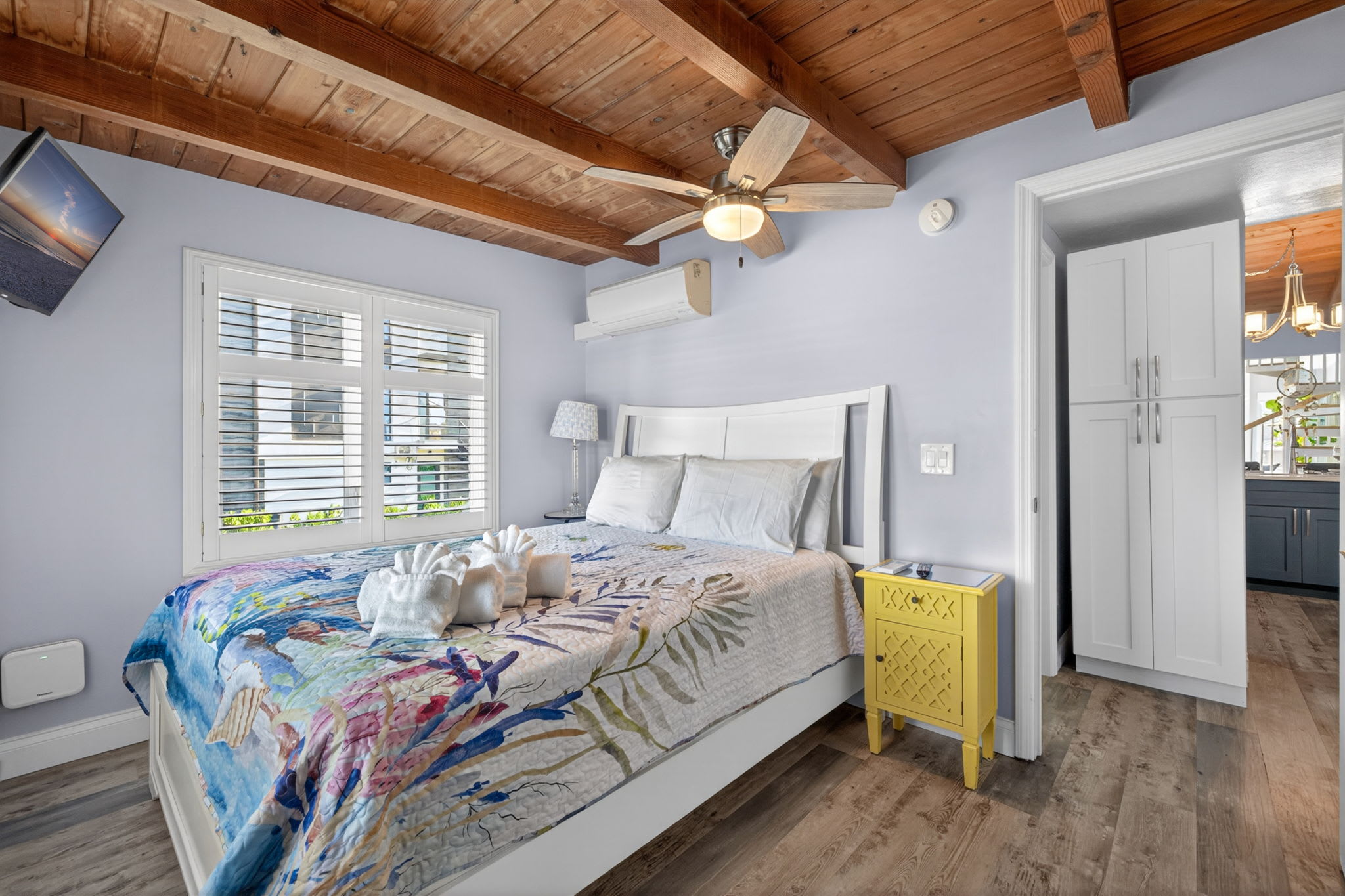 Accessed by a charming spiral staircase, this standout space offers breathtaking views of the canal and back bay. Featuring a queen Murphy bed and two twin beds, it’s ideal for kids, teens, or extra guests looking for a fun and memorable sleeping space.