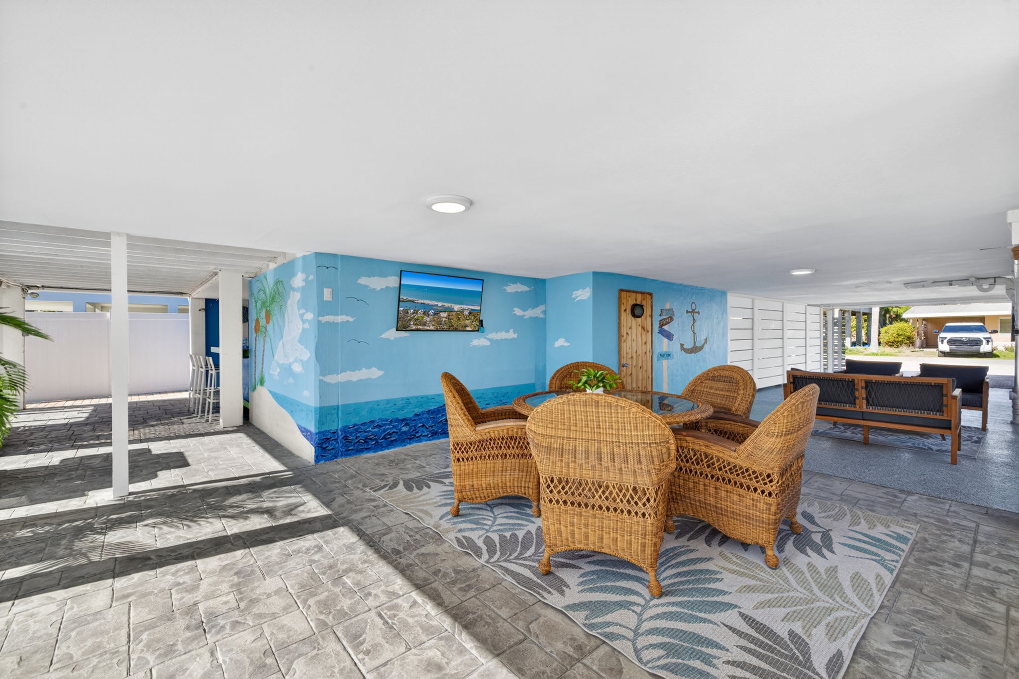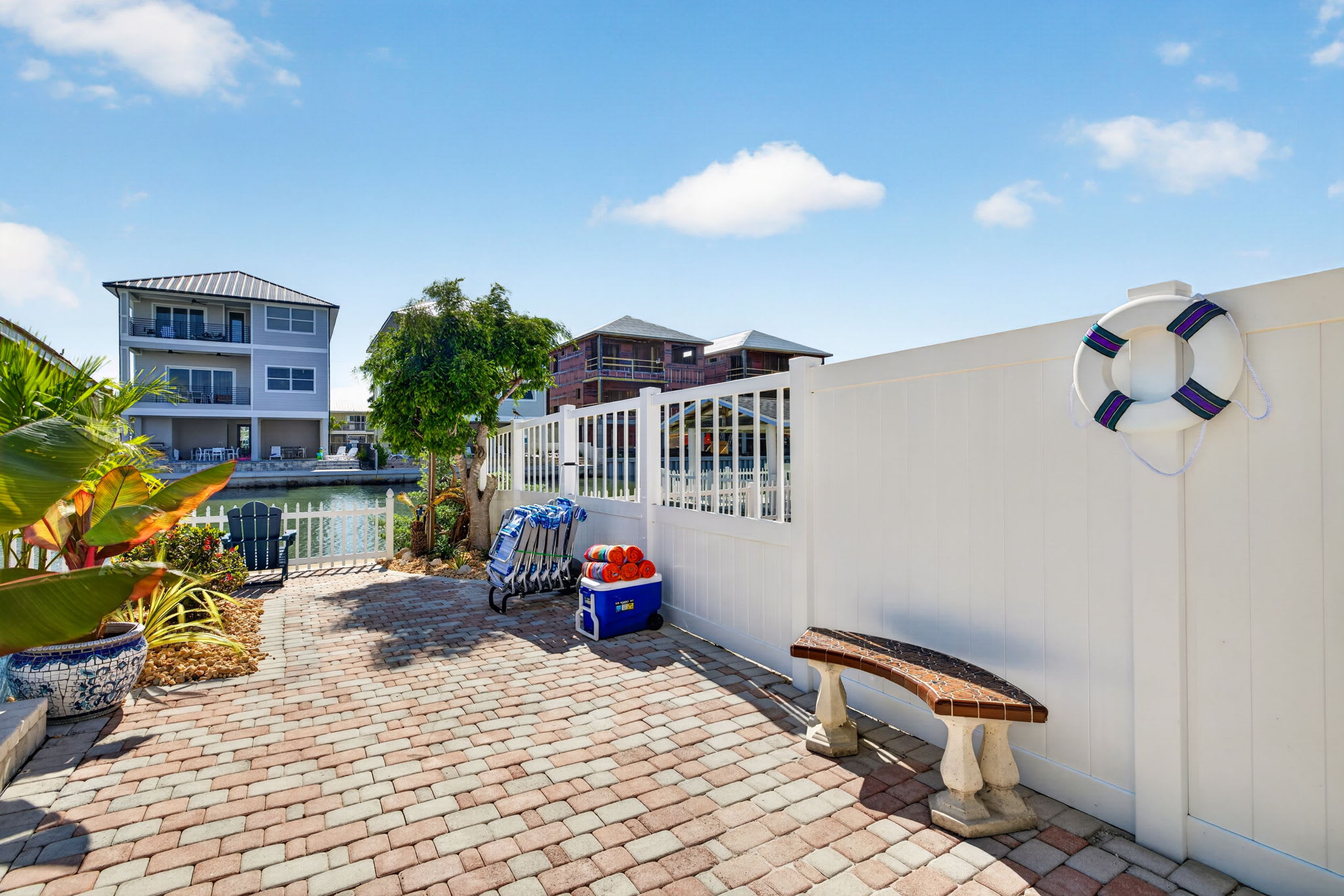 With water views, tropical surroundings, and plenty of space to gather, this outdoor area feels like your own private retreat.