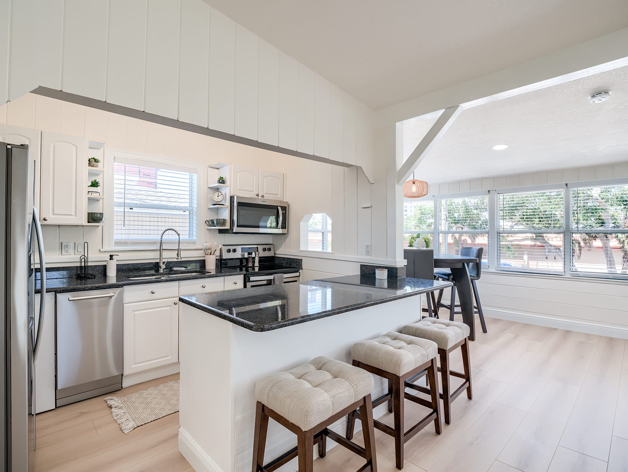 This is our 2nd time at one of Angie's properties. We arrived to a spotless home (just like last time). We could actually see the Gulf from the front porch. The beds and linens were super comfortable. There were beach towels and we saw everything needed for a beach day in the storage room. There is a beautiful pool in the back of the home. Also there is a great breakfast place less then 1 street over. There is a trolley stop just past the end of the street (you can also walk to Times Square). We stayed 2 days post Helene (we kept our travel plans as we were coming to visit family). Angie was a beyond amazing host. You don't have to worry about anything when you stay at her properties. We definitely plan to return.