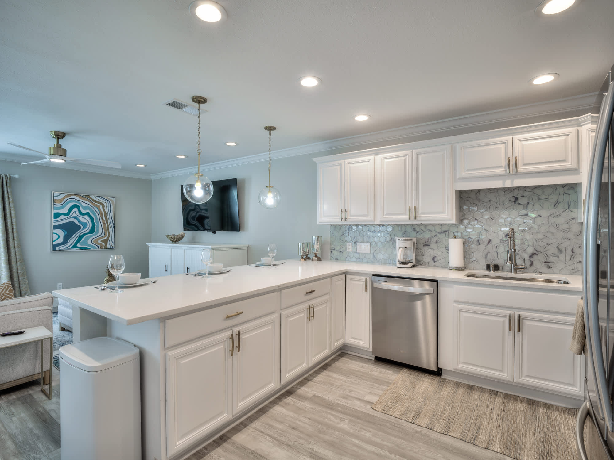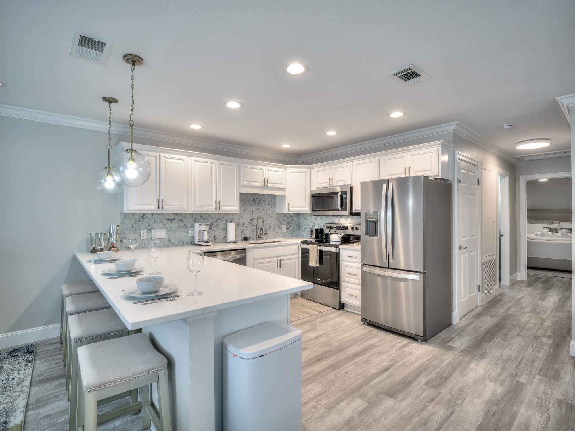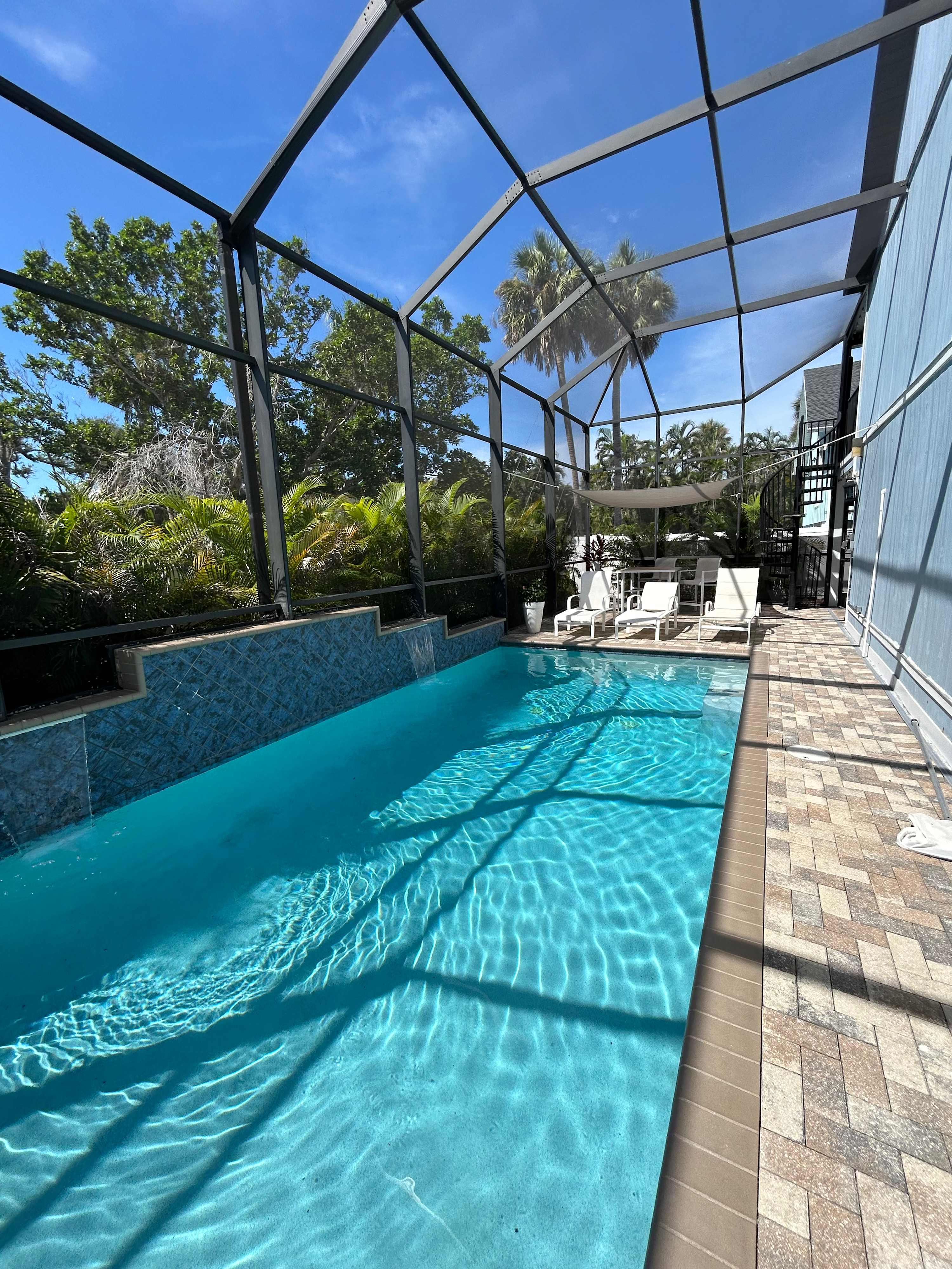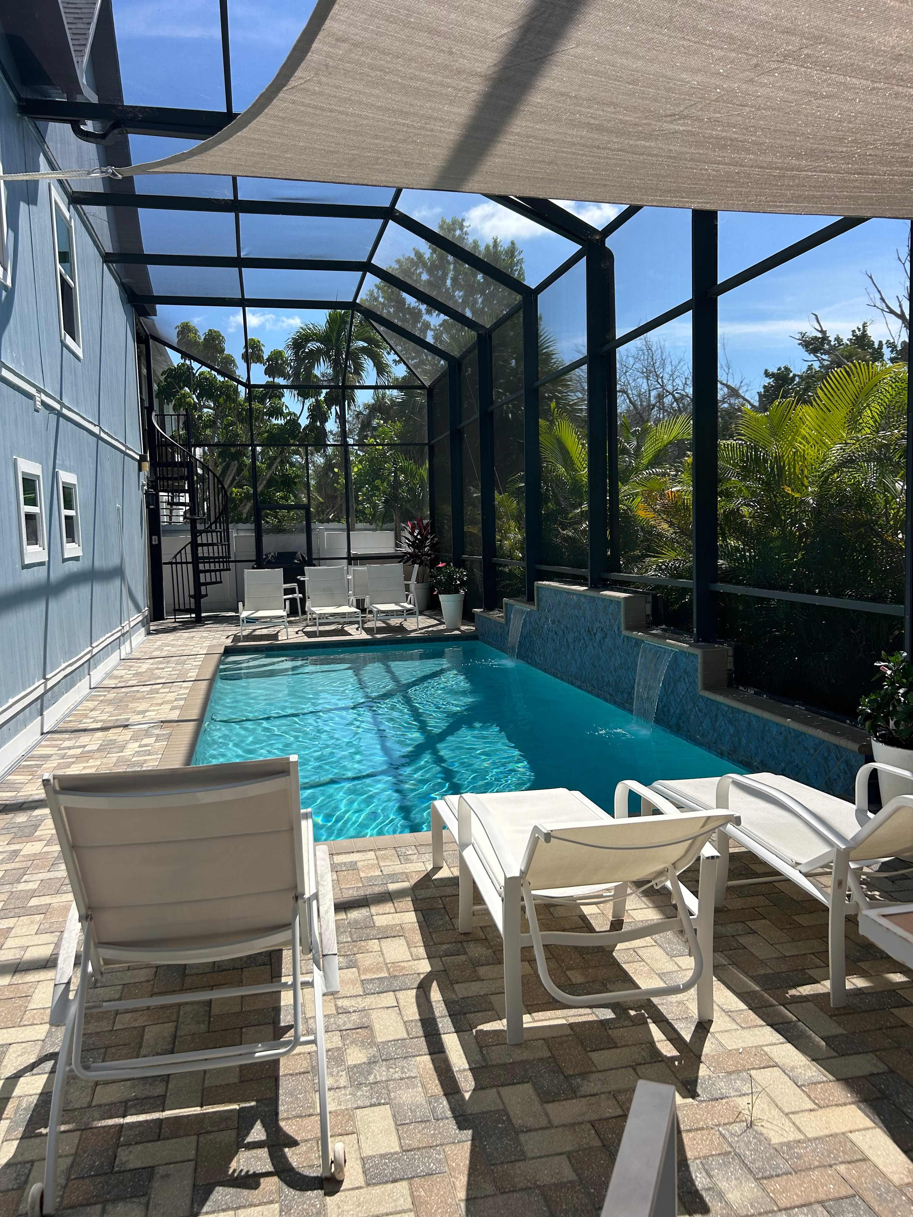 The place is beautiful! Clean and exactly as described. The pool and the water feature were so warm and relaxing! Such great walkability!! Angie was available anytime we had questions. Such a big help with suggestions of where to walk to have dinner. She knows her way around FMB!!