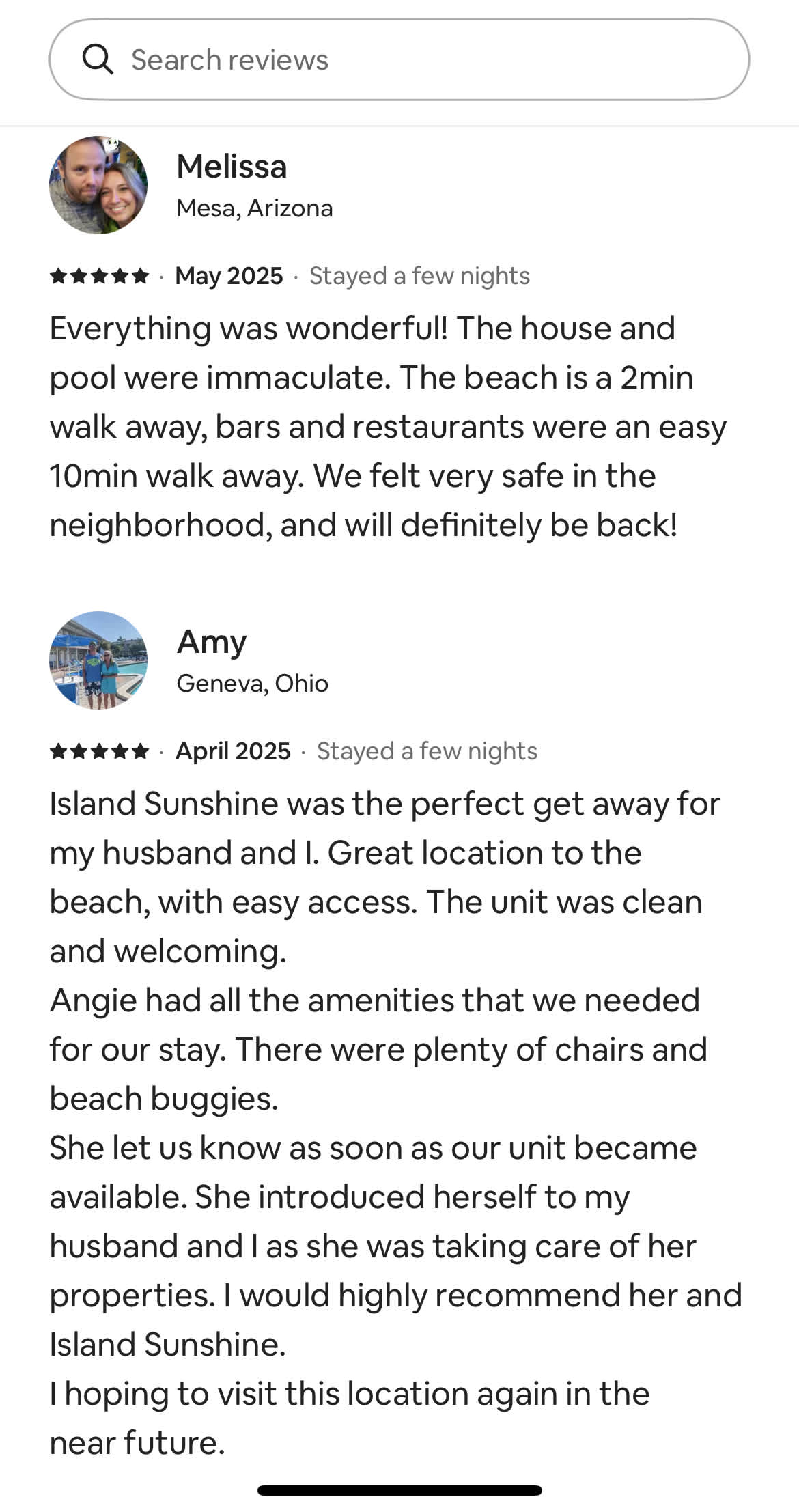 Angie is a fantastic host and island sunshine was the perfect location for our family. Great proximity to the beach and local restaurants, while also having wonderful amenities onsite like the heated pool and grill to be able to relax and enjoy the Florida weather. Would absolutely visit again and recommend.