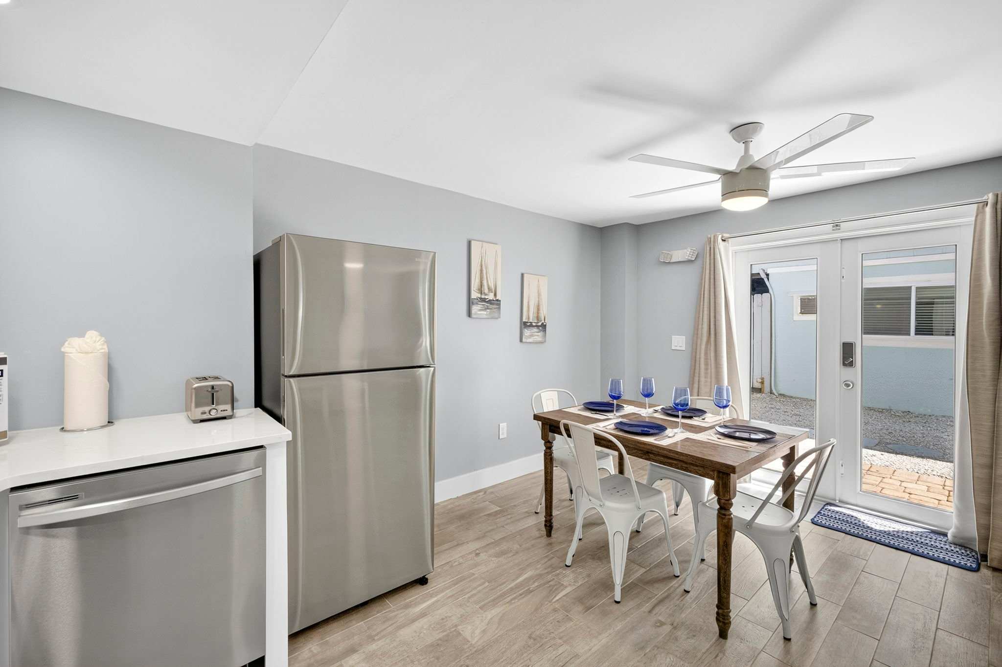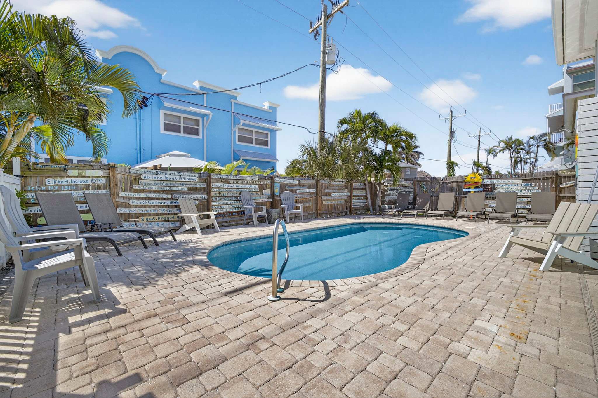 This darling Inn offers several outdoor spaces for our guests to enjoy. As previously mentioned, the pool is 20 steps from the front door of this apartment. There are ample chairs, and loungers—ideal for soaking up the sun or enjoying a peaceful island afternoon. Adjacent to the pool area is our community grilling and picnic table area. You will find plenty of space to spread out, prepare and enjoy your food and drinks in our beautifully landscaped backyard. Direct beach access is just one block away, and Times Square is within easy walking or biking distance.