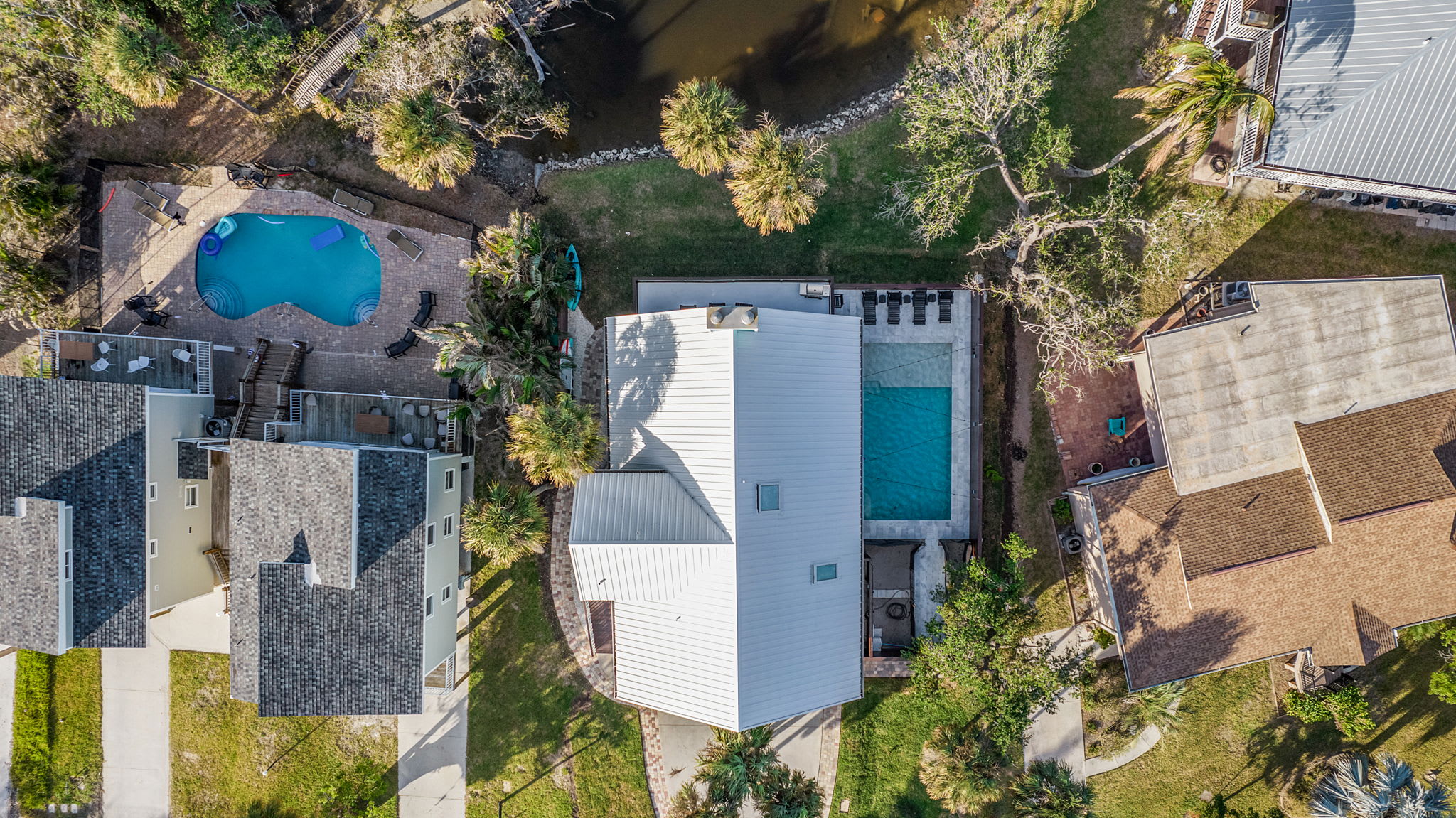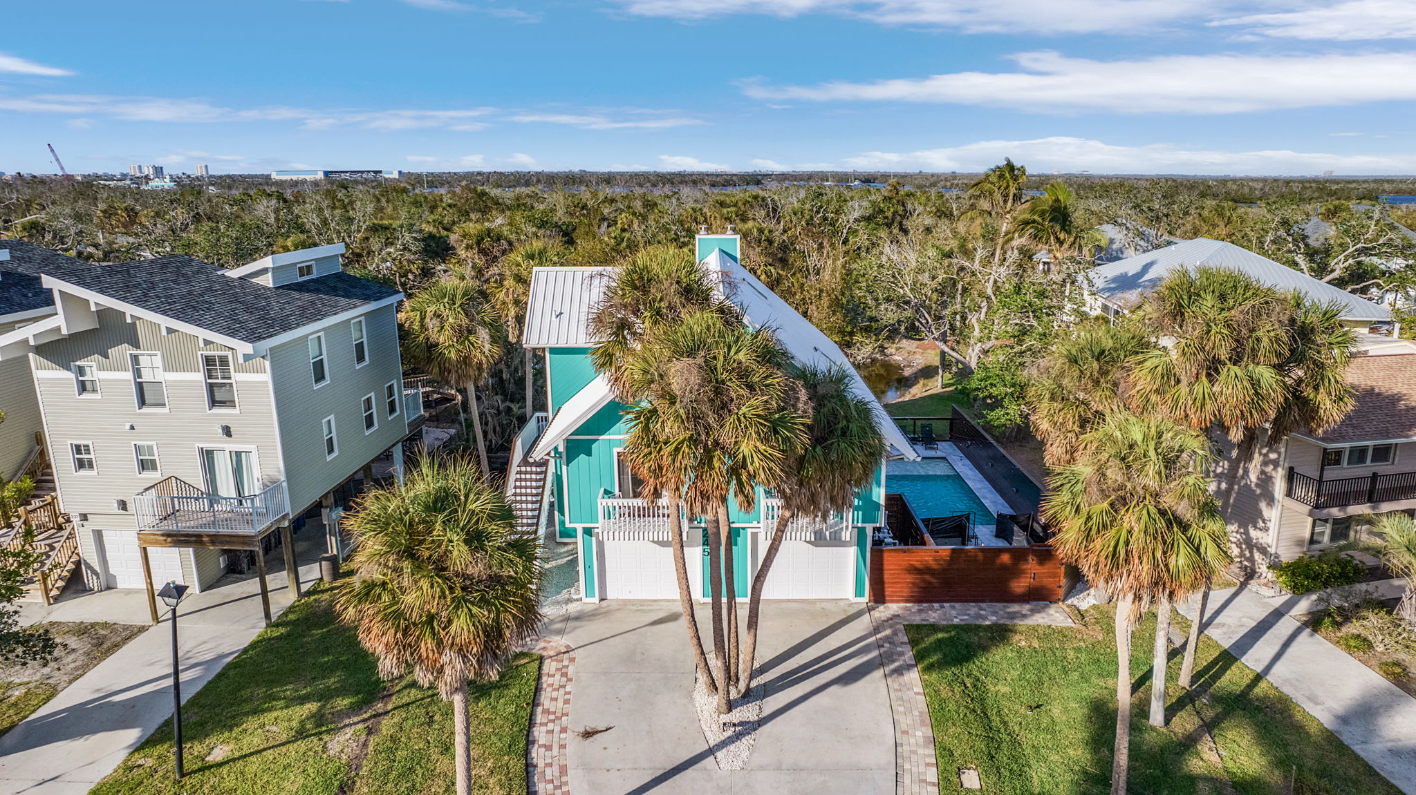 Experience the ultimate in relaxation and luxury at Nature View Island Manor, a stunning property in a tranquil neighborhood. This home offers a unique combination of privacy and natural beauty, with exceptional views of the lake and lush backyard. The living room's large windows and doors provide a seamless connection to the outdoors. Enjoy convenient access to the Gulf and a short bike ride to Times Square, known for its charming waterfront dining and entertainment.