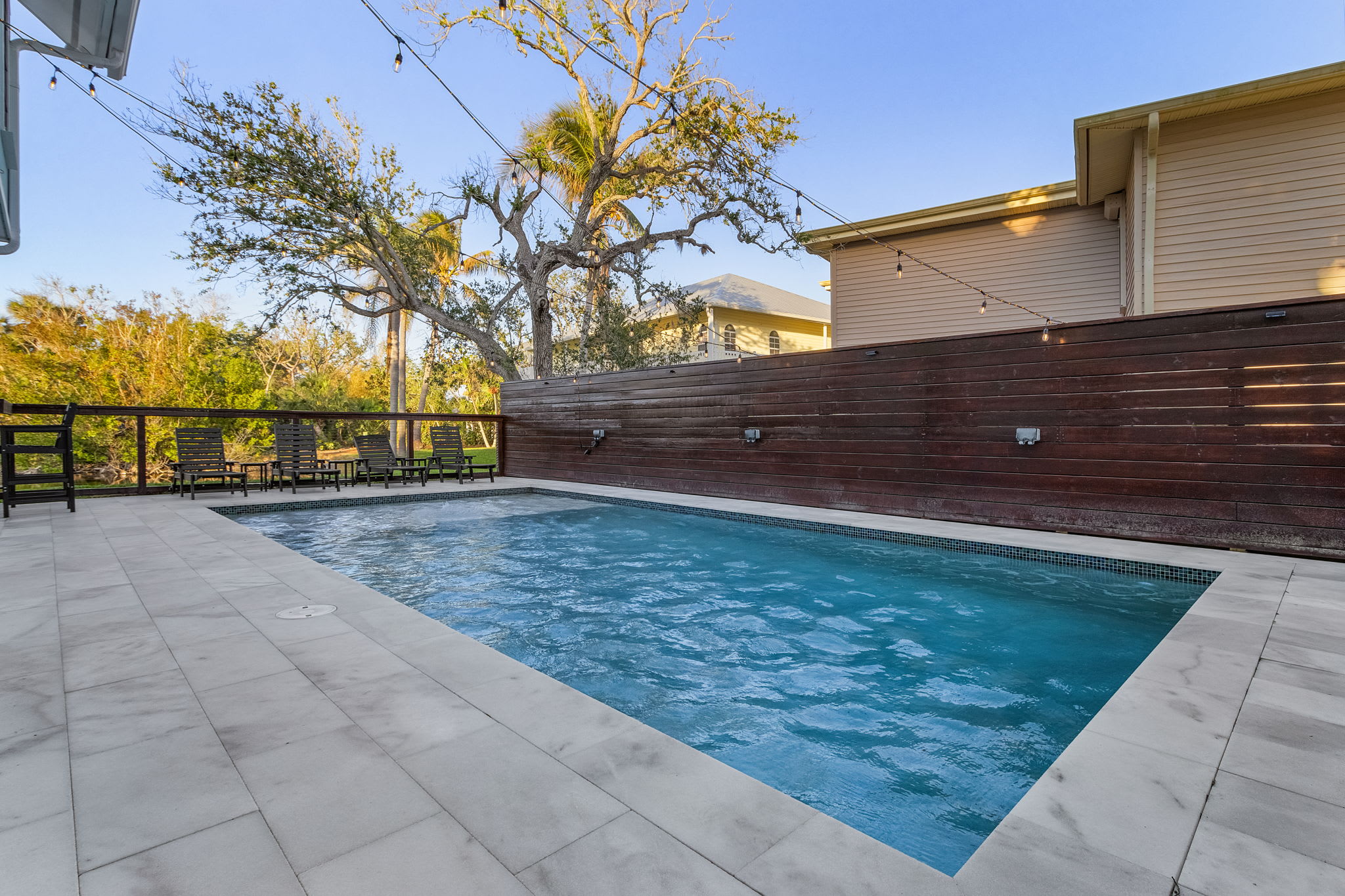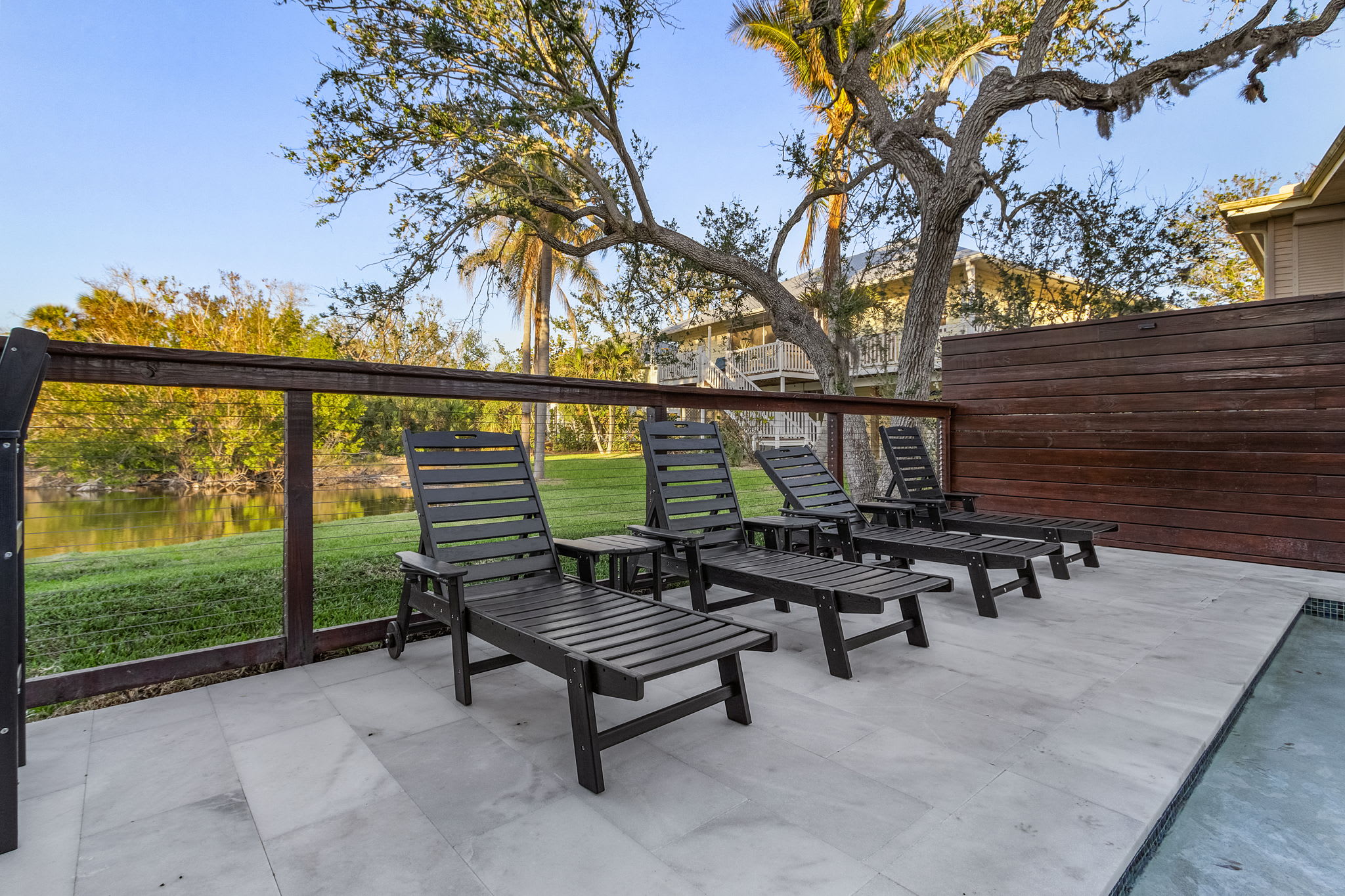 ☀ Private heated pool with large lounging areas.