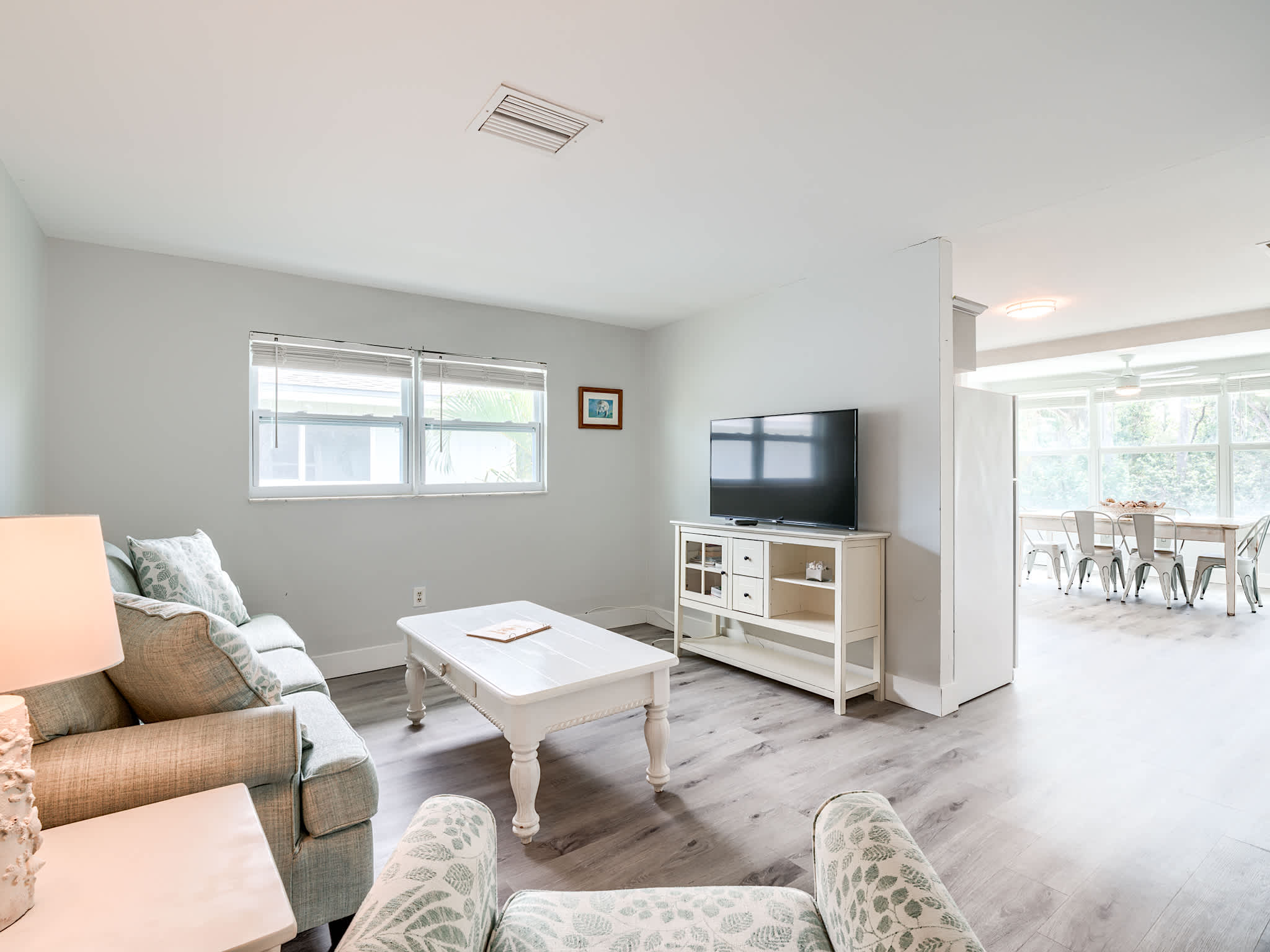 Pros: great location, easy walk to beach access but back far enough so no Estero Blvd noise. Easy walk to bars and restaurants as well.Clean, plenty of towels, beds soft but comfy. Nice size rooms. Shower hot and spacious. Large vanity. Starter shower gel, shampoo, conditioner provided Nice to have access to beach wagons, coolers, chairs.Nice to have laundry available. Great clean grills, pool small but very nice. Very clean and well maintained outside areas. Owner very accessible . Cons:Lack of lamps. Living room could use a floor lamp. Bedroom #2 could use an extension cord and lamp on bedside stand. Master BR could use a lamp on the dresser. Kitchen lacking in knives including steak knives, and cooking utensils ( whisks, kitchen shears, slotted spoons, etc)A keurig would be a plus. low lighting in kitchen also. Starter liquid detergent and dishwasher pods would be nice. Overall I would recommend this property and would rebook.- Stephen T. , Posted:
